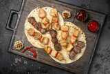 Ароматное ассорти шашлычков — это вкус настоящего гриля в удобном формате. В набор входят шашлык из индейки, баранины и курицы, дополненные тортильями и соусами. Разнообразие мяса и продуманная подача делают сет универсальным выбором для компании друзей, корпоративного фуршета или праздничного стола.