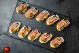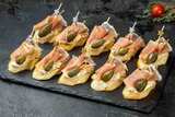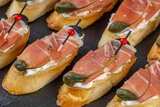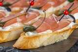 Пармская ветчина, Багет пшеничный, Каперсы, Маслины, Сыр творожный креметте