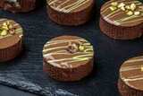 Чизкейк «Ориент» с тестом катаифи – изысканный десерт с восточным акцентом. Нежная текстура крема из сыра креметте и фисташковой пасты в сочетании с орехами фисташки и кунжутной пастой создает гармонию вкусов. Тонкие слои теста катаифи придают особую хрустящую текстуру, а молочный и белый шоколад добавляют сладкий и мягкий вкус. Этот чизкейк идеально подойдет для эксклюзивных мероприятий, банкетов или тематических вечеринок, придавая утонченность и восточную элегантность вашему столу.