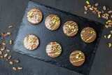 Чизкейк «Ориент» с тестом катаифи – изысканный десерт с восточным акцентом. Нежная текстура крема из сыра креметте и фисташковой пасты в сочетании с орехами фисташки и кунжутной пастой создает гармонию вкусов. Тонкие слои теста катаифи придают особую хрустящую текстуру, а молочный и белый шоколад добавляют сладкий и мягкий вкус. Этот чизкейк идеально подойдет для эксклюзивных мероприятий, банкетов или тематических вечеринок, придавая утонченность и восточную элегантность вашему столу.