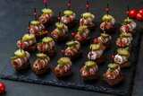 Канапе с салом и хреном на бородинском хлебе — это яркая закуска, в которой насыщенный вкус сала идеально сочетается с пикантностью хрена и легкой кислинкой маринованного огурца. Хрустящий бородинский хлеб добавляет текстуру и завершающий акцент к гармонии вкусов