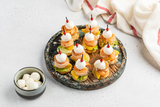 Сочное манго, придающее закуске легкую сладость и свежесть, сочетается с кремовой моцареллой и нежной креветкой. Каждый ингредиент усиливает вкус другого, создавая гармонию и яркий вкус. Эти канапе добавят изысканности на фуршетный стол и впечатлят ваших гостей оригинальностью сочетания.
