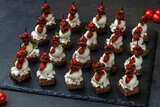 Нежный куриный мусс, дополненный перепелиным яйцом, томатами и хрустящим хлебом, создают гармоничное сочетание для вашего стола. Эти канапе идеально подойдут для фуршета или торжественного мероприятия, добавляя особую изюминку.