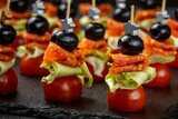 Вкусное канапе, отличное сочетание продуктов, закуски были на фуршете, все очень понравилось!