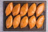 Крошечные сдобные пирожки с начинкой из капусты, тушенной на оливковом масле с морковью и луком.