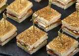 Сочное куриное филе, свежие томаты, хрустящий салатный лист и нежный соус «Цезарь». Всё это аккуратно уложено на мягкий хлеб. Идеальный выбор для фуршета, кофе-брейка или бранча