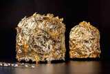 Изысканное сочетание воздушного теста с цитрусовыми нотами, апельсиновым кремом и богатым наполнением из клюквы, изюма, кураги и цукатов дарит незабываемые впечатления. Завершающий штрих – роскошное золотое покрытие, превращающее куличи в настоящее украшение пасхального стола.