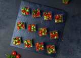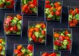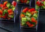 Томат черри, огурец свежий, перец болгарский, масло оливковое, ростки гороха.