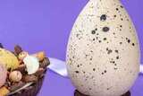 Шоколадное пасхальное яйцо «Перепелиное чудо» – оригинальное лакомство для пасхального стола. Его необычный внешний вид с пятнистым узором напоминает природное перепелиное яйцо и создаёт атмосферу весеннего праздника.