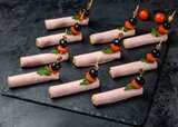 Рулетики с сыром выполнены отлично, классическая и всеми любимая закуска. Рекомендую к фуршетам.