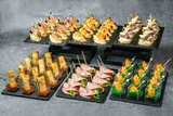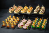 В этом наборе сочетаются нежные веррины с лососем и икрой щуки, яркая ветчина с овощами на прищепке, брускетты с ростбифом, пармской ветчиной и лососем, а также оригинальные роллы чемичанга с курицей и овощами. Идеальный выбор для случаев, когда важно вкусно, красиво и со вкусом подчеркнуть статус мероприятия.