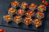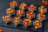 Салат в бокале: с отваренной до мягкости говядиной, белой фасолью, болгарским перцем, перьями зеленого лука и сладкой кукурузой.